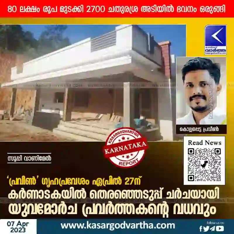 House | 'പ്രവീണ്‍' ഗൃഹപ്രവേശം ഏപ്രില്‍ 27ന്; കര്‍ണാടകയില്‍ തെരഞ്ഞെടുപ്പ് ചര്‍ചയായി യുവമോര്‍ച പ്രവര്‍ത്തകന്റെ വധവും
