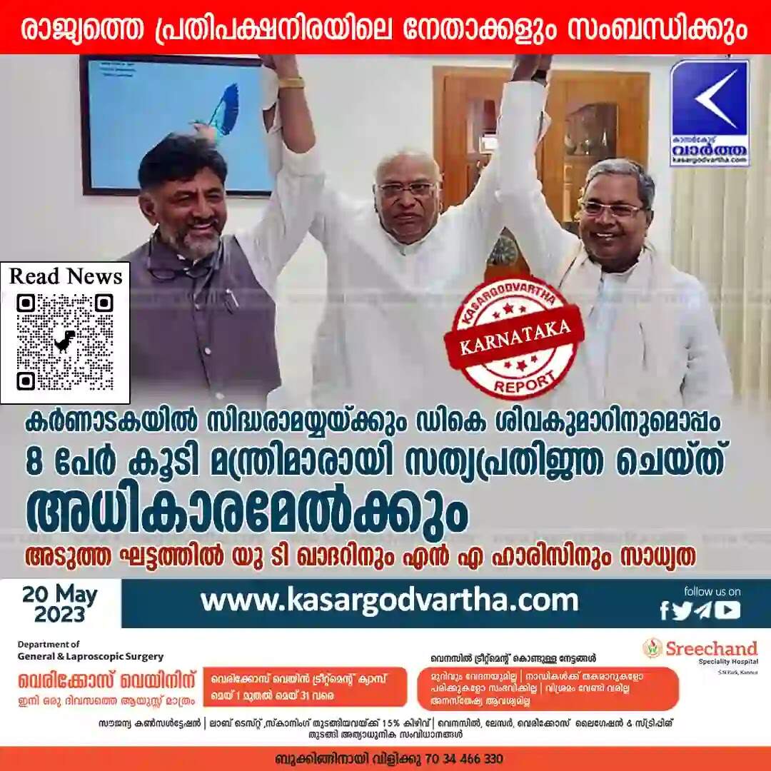 Swearing-in Ceremony | കർണാടകയിൽ സിദ്ധരാമയ്യയ്ക്കും ഡികെ ശിവകുമാറിനുമൊപ്പം 8 പേർ കൂടി മന്ത്രിമാരായി സത്യപ്രതിജ്ഞ ചെയ്ത് അധികാരമേൽക്കും; അടുത്ത ഘട്ടത്തിൽ യു ടി ഖാദറിനും എൻ എ ഹാരിസിനും സാധ്യത