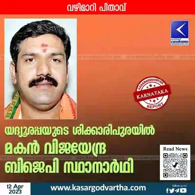 BY Vijayendra | യദ്യൂരപ്പയുടെ ശിക്കാരിപുരയില് മകന് വിജയേന്ദ്ര ബിജെപി സ്ഥാനാര്ഥി