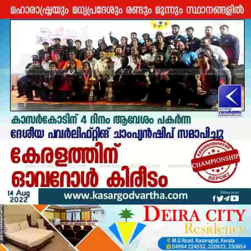 Kerala Won | കാസർകോടിന് 4 ദിനം ആവേശം പകർന്ന ദേശീയ പവര്‍ലിഫ്റ്റിങ് ചാംപ്യൻഷിപ്‌ സമാപിച്ചു; കേരളത്തിന് ഓവറോള്‍ കിരീടം