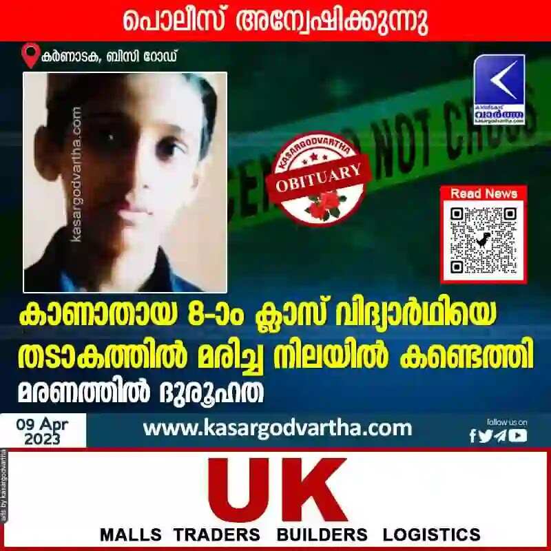 Keywords: News, Mangalore News, Karnataka News, Student Died, Found Dead, Missing News, Missing class 8 student found dead in lake.