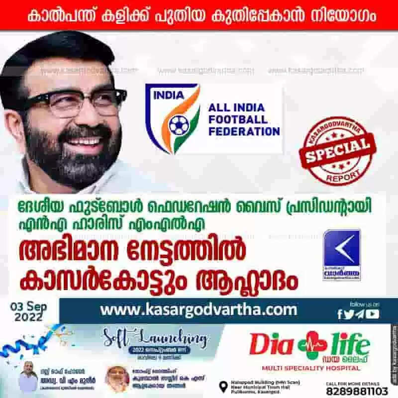 NA Haris MLA | ദേശീയ ഫുട്ബോള് ഫെഡറേഷന് വൈസ് പ്രസിഡന്റായി എന്എ ഹാരിസ് എംഎല്എ; അഭിമാന നേട്ടത്തില് കാസര്കോട്ടും ആഹ്ലാദം