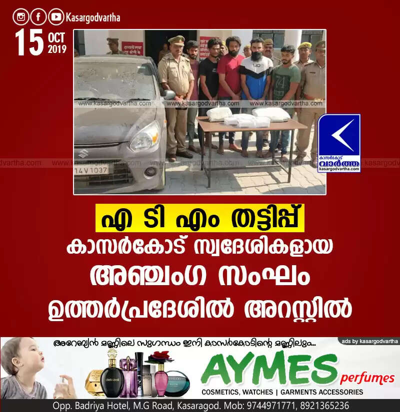 എ ടി എം തട്ടിപ്പ്; കാസര്‍കോട് സ്വദേശികളായ അഞ്ചംഗ സംഘം ഉത്തര്‍പ്രദേശില്‍ അറസ്റ്റില്‍