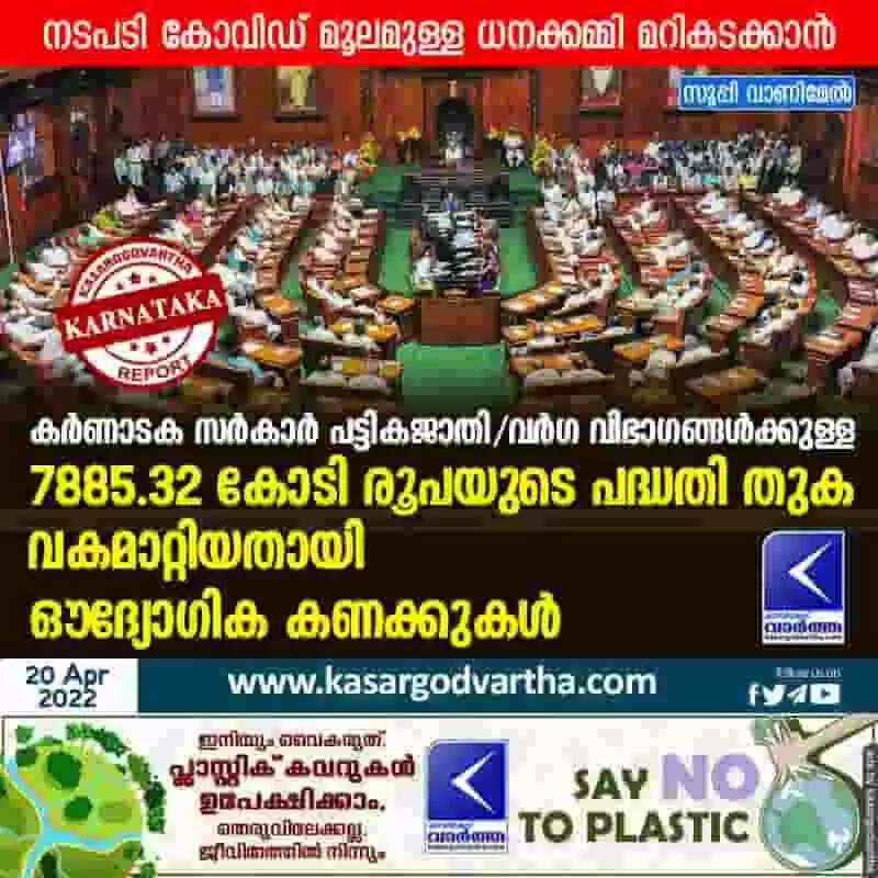 കർണാടക സർകാർ പട്ടികജാതി/വർഗ വിഭാഗങ്ങൾക്കുള്ള 7885.32 കോടി രൂപയുടെ പദ്ധതി തുക വകമാറ്റിയതായി ഔദ്യോഗിക കണക്കുകൾ