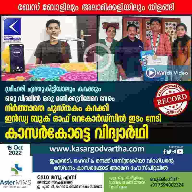 Keywords: Kanhangad, Kerala, News, Top-Headlines, Latest-News, National, Student, Kasaragod, Padannakad, Student Enters 'India Book of Records'.