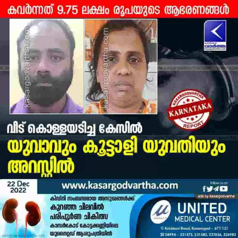 Arrested | വീട് കൊള്ളയടിച്ച കേസില് യുവാവും കൂട്ടാളി യുവതിയും അറസ്റ്റില്