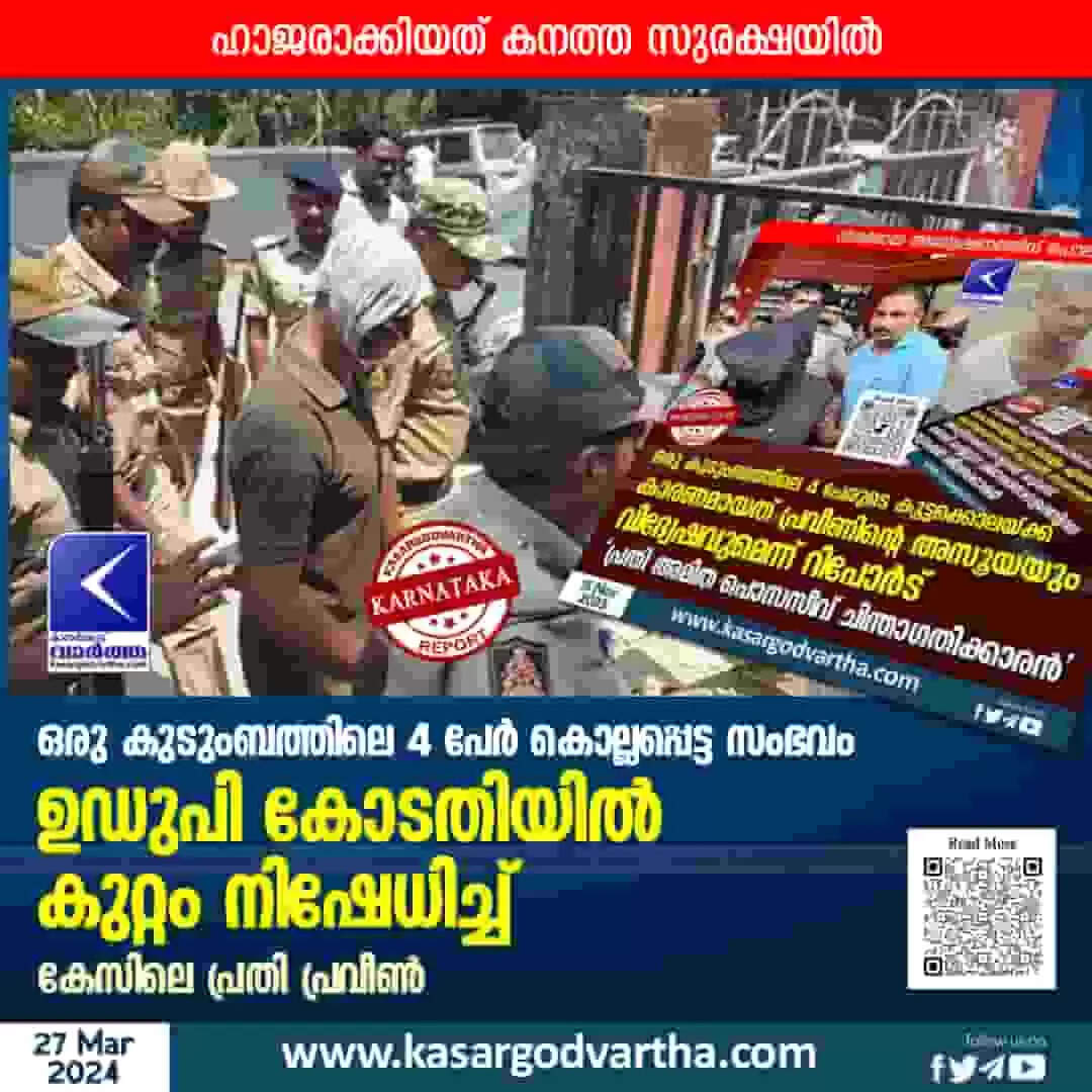 Murder Case | ഒരു കുടുംബത്തിലെ 4 പേർ കൊല്ലപ്പെട്ട സംഭവം: ഉഡുപി കോടതിയിൽ കുറ്റം നിഷേധിച്ച് കേസിലെ പ്രതി പ്രവീൺ