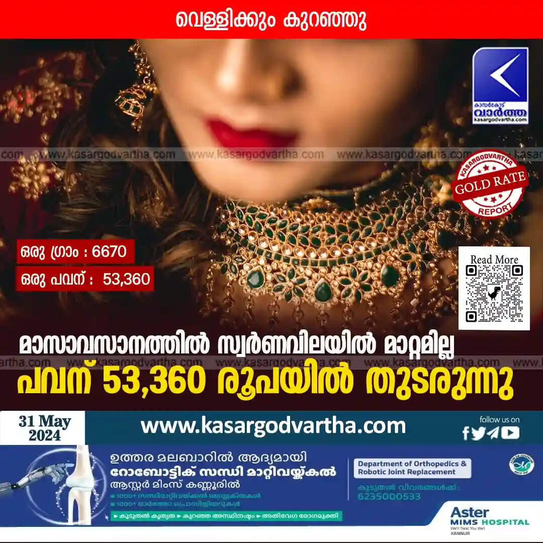 Gold Price | മാസാവസാനത്തിൽ സ്വർണവിലയിൽ മാറ്റമില്ല; പവന് 53,360 രൂപയിൽ തുടരുന്നു