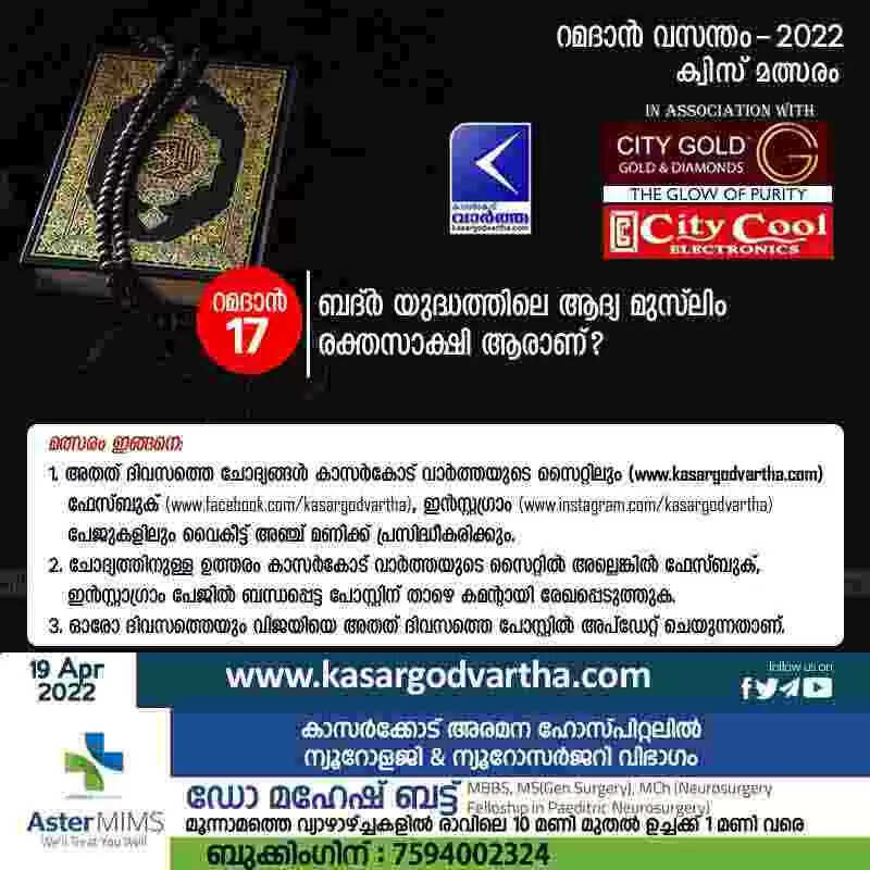 'റമദാൻ വസന്തം - 2022' കാസർകോട് വാർത്ത - ക്വിസ് മത്സരം - 17