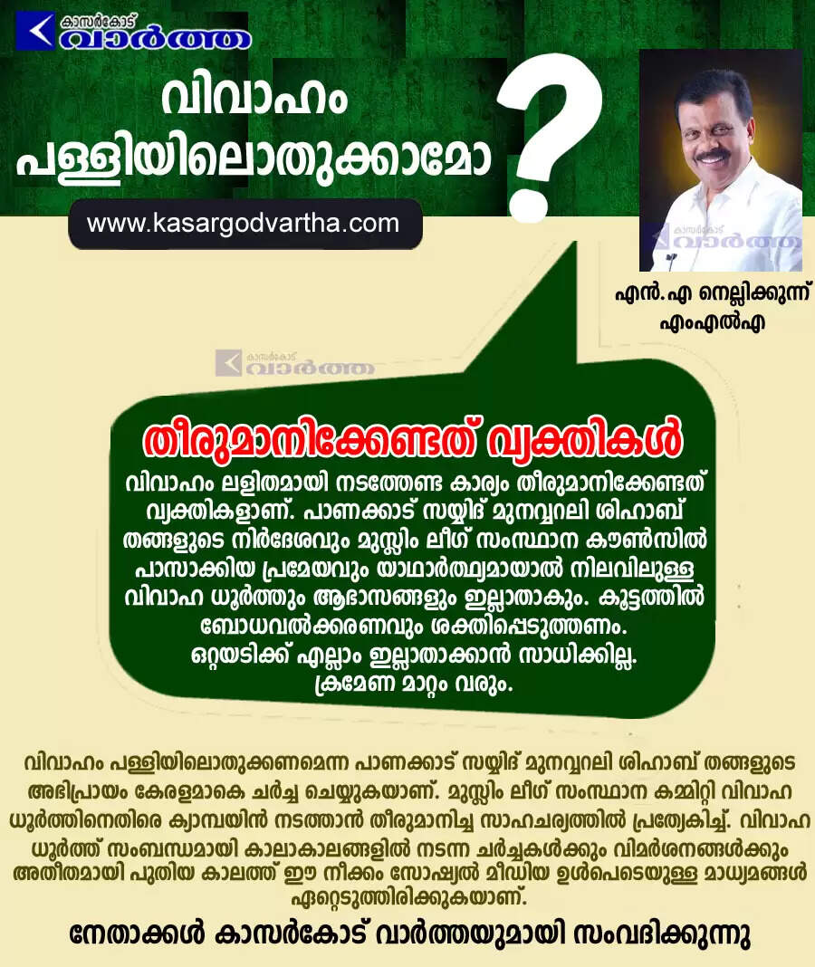 Keywords : N.A. Nellikunnu, MLA, Kasaragod, Marriage, Muslim-league, Kasargodvartha,  Wedding: Anti extravagance campaign.  Advertisement: