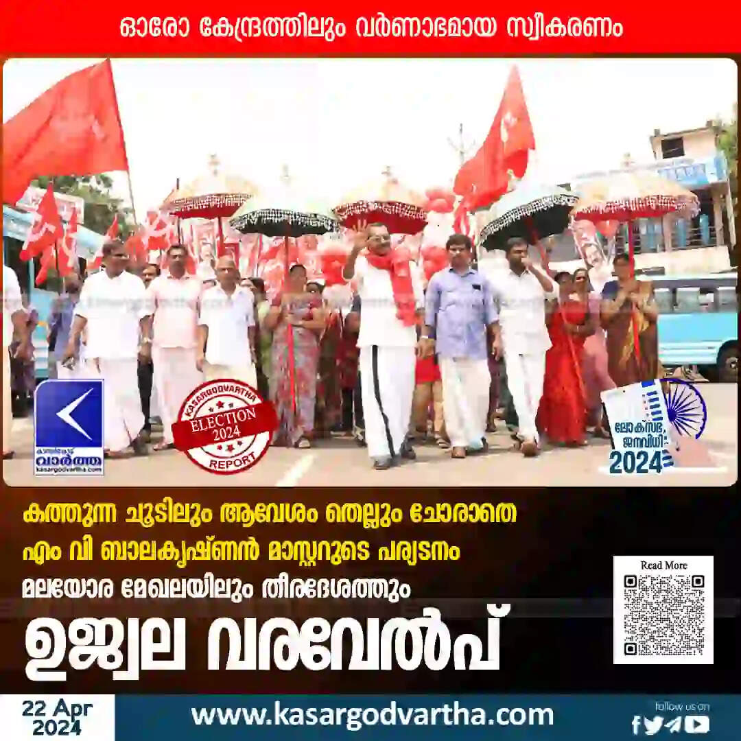 Campaign | കത്തുന്ന ചൂടിലും ആവേശം തെല്ലും ചോരാതെ എം വി ബാലകൃഷ്ണൻ മാസ്റ്ററുടെ പര്യടനം; മലയോര മേഖലയിലും തീരദേശത്തും ഉജ്വല വരവേൽപ്