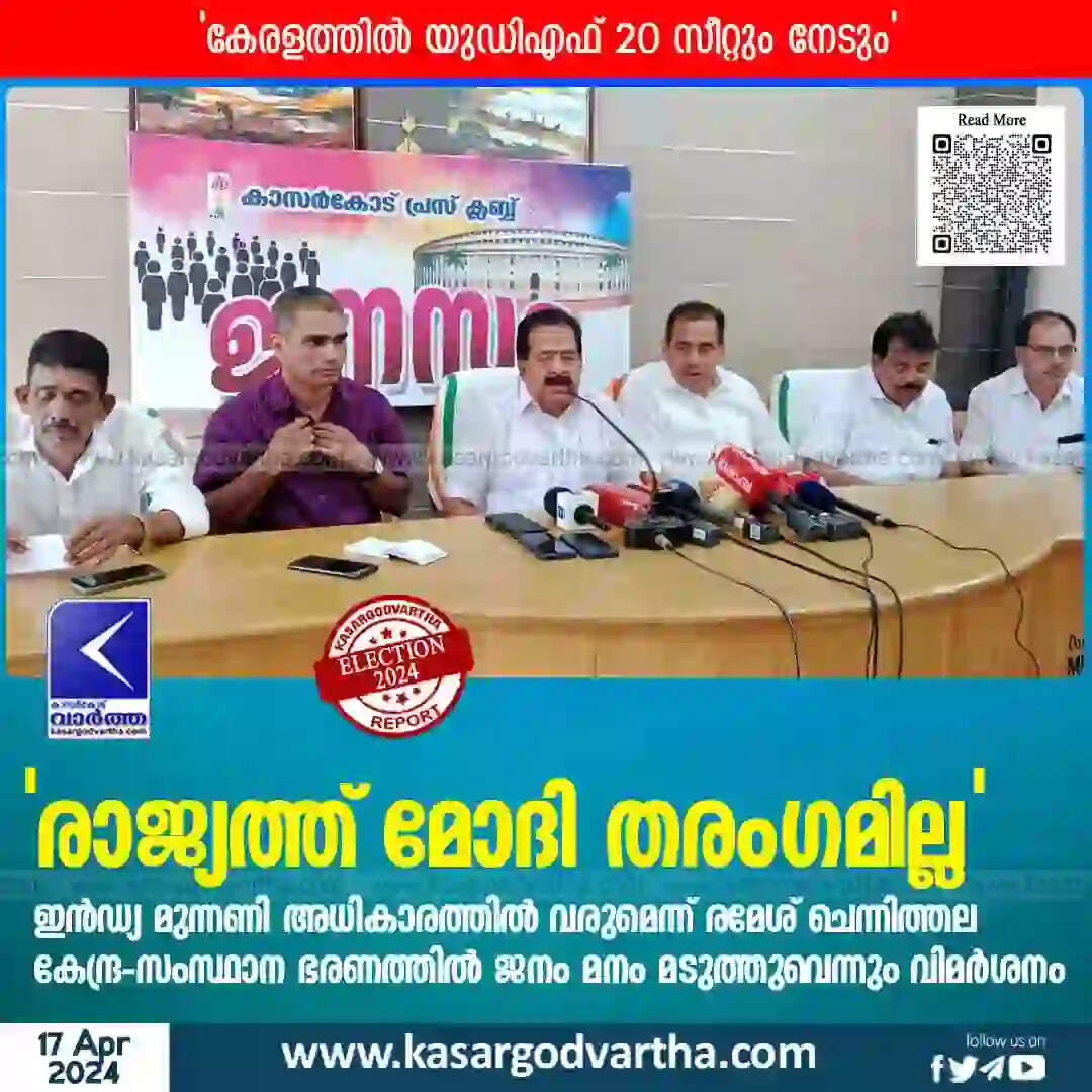 Ramesh Chennithala | 'രാജ്യത്ത് മോദി തരംഗമില്ല', ഇൻഡ്യ മുന്നണി അധികാരത്തിൽ വരുമെന്ന് രമേശ് ചെന്നിത്തല; കേന്ദ്ര-സംസ്ഥാന ഭരണത്തിൽ ജനം മനം മടുത്തുവെന്നും വിമർശനം