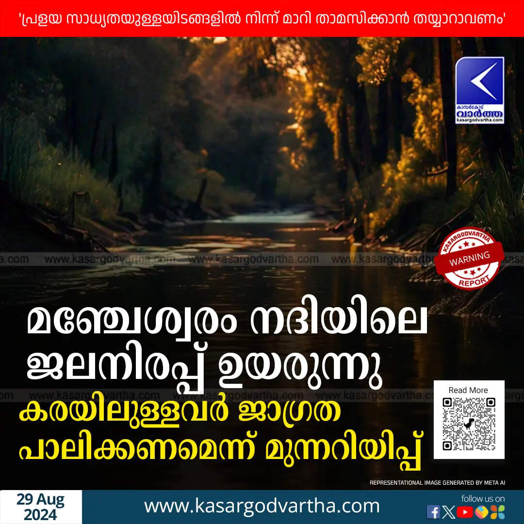 Warning | മഞ്ചേശ്വരം നദിയിലെ ജലനിരപ്പ് ഉയരുന്നു; കരയിലുള്ളവർ ജാഗ്രത പാലിക്കണമെന്ന് മുന്നറിയിപ്പ്
