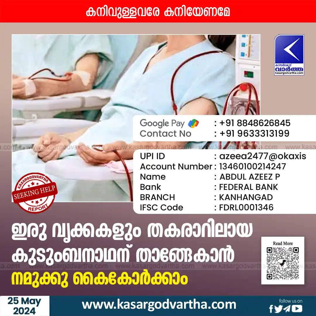 Medical | ഇരു വൃക്കകളും തകരാറിലായ കുടുംബനാഥന് താങ്ങേകാൻ, നമുക്കു കൈകോർക്കാം