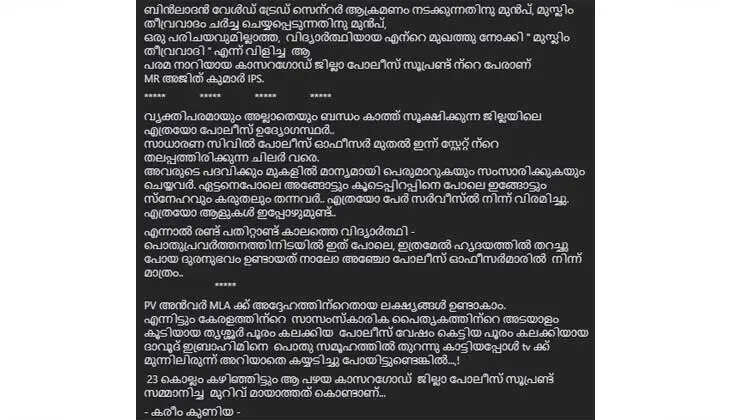 ഫേസ്ബുക് പോസ്റ്റിന്റെ പൂർണരൂപം: