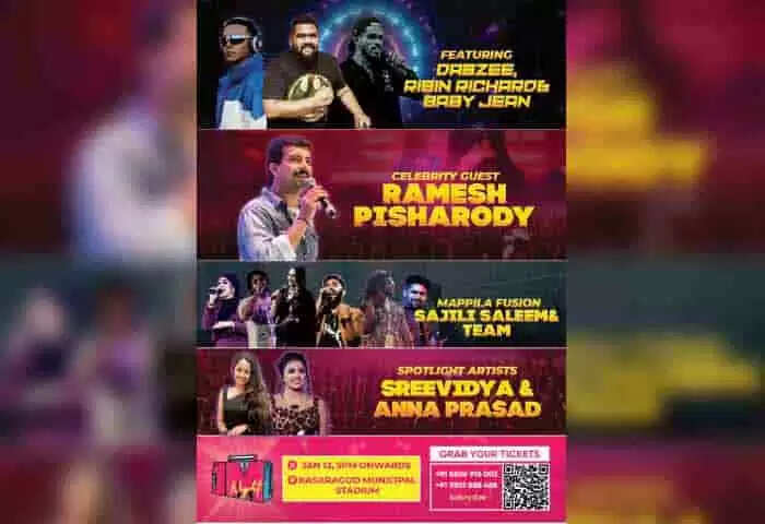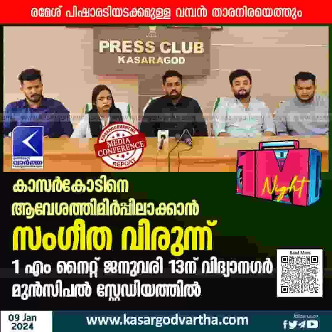 Musical Night | കാസർകോടിനെ ആവേശത്തിമിർപ്പിലാക്കാൻ സംഗീത വിരുന്ന്; 1 എം നൈറ്റ് ജനുവരി 13ന് വിദ്യാനഗർ മുൻസിപൽ സ്റ്റേഡിയത്തിൽ