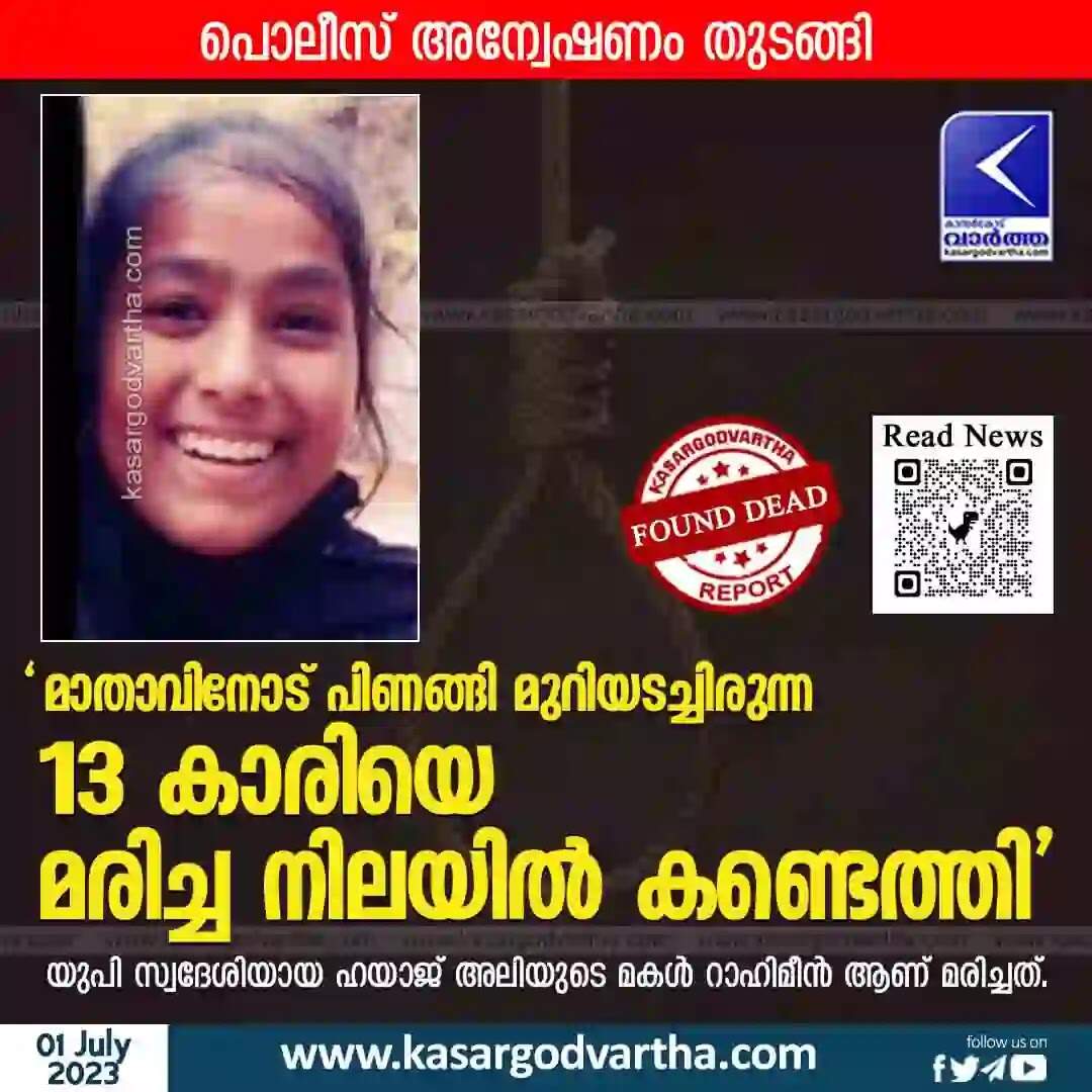 Keywords: News, Kasaragod, Kanhangad, Obituary, Found Dead, Police, Investigation, 13-year-old girl found dead.