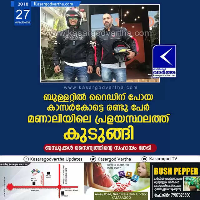 ബുള്ളറ്റില് റൈഡിന് പോയ കാസര്കോട്ടെ രണ്ടു പേര് മണാലിയിലെ പ്രളയസ്ഥലത്ത് കുടുങ്ങി; ബന്ധുക്കള് സൈന്യത്തിന്റെ സഹായം തേടി