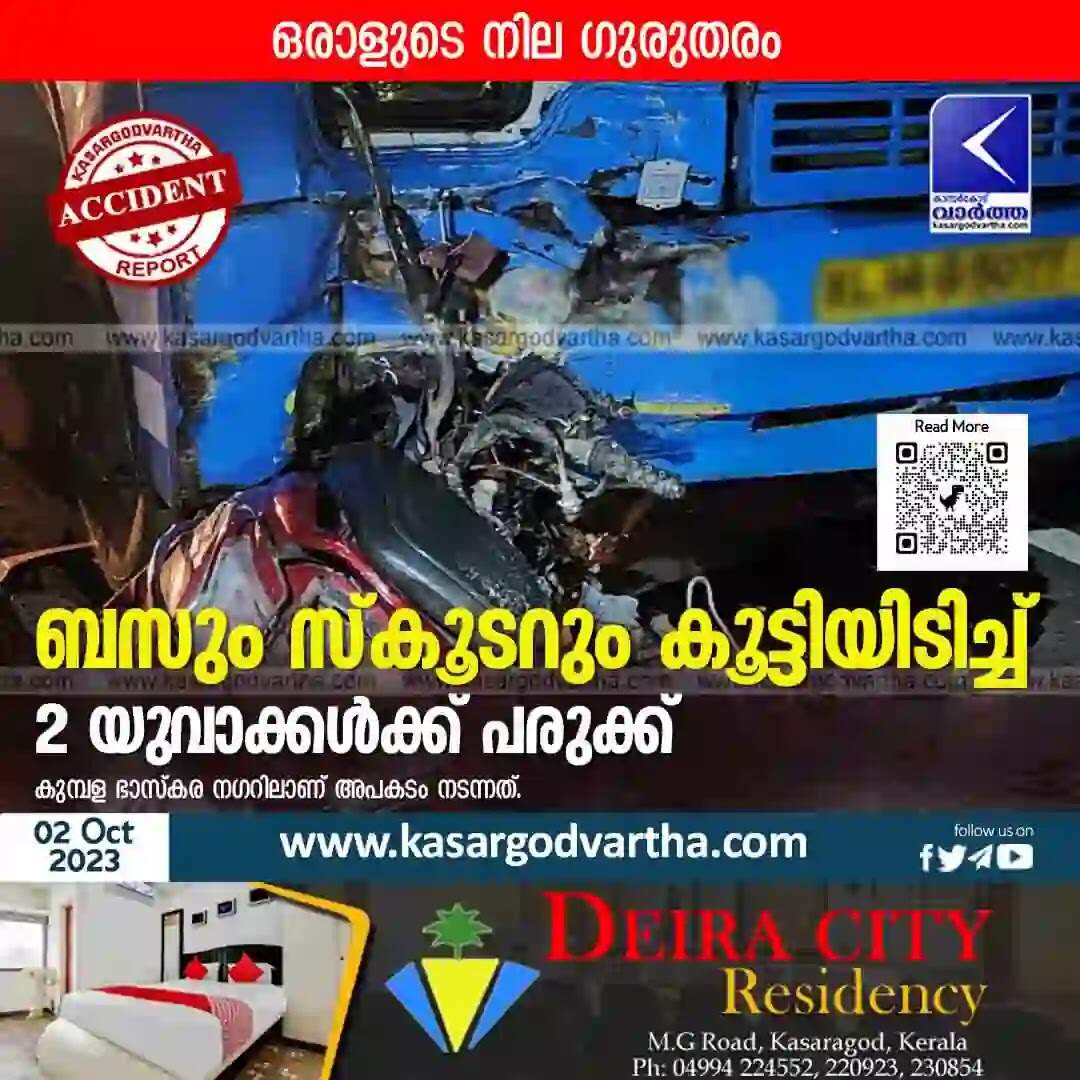 Keywords: Accident, Kumbla, Malayalam News, Kerala News, Kasaragod News, Accident News, Kumbala News, 2 youth injured in bus-scooter collision.