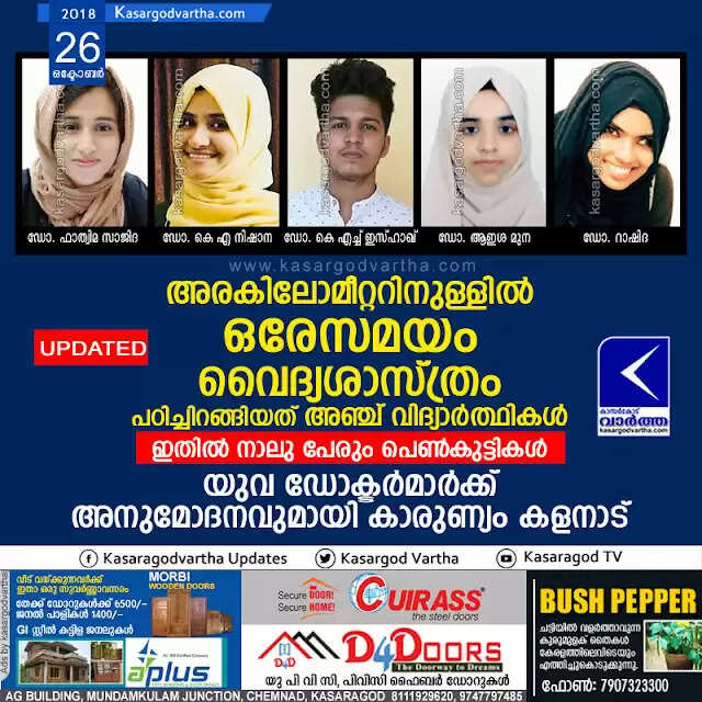 Keywords: 5 Students from Kalanad Completed MBBS one time, Kalanad, Kasaragod, News, Top-Headlines, Doctors, MBBS, Doctor, Students
