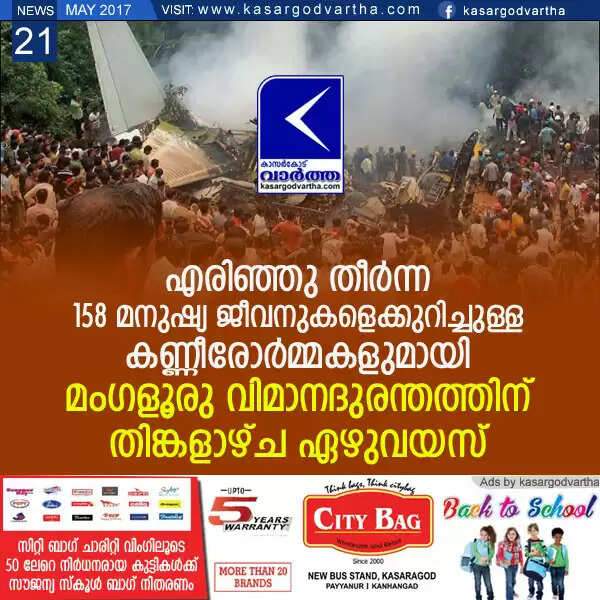 എരിഞ്ഞു തീര്‍ന്ന 158 മനുഷ്യ ജീവനുകളെക്കുറിച്ചുള്ള കണ്ണീരോര്‍മ്മകളുമായി മംഗളൂരു വിമാനദുരന്തത്തിന് തിങ്കളാഴ്ച ഏഴുവയസ്