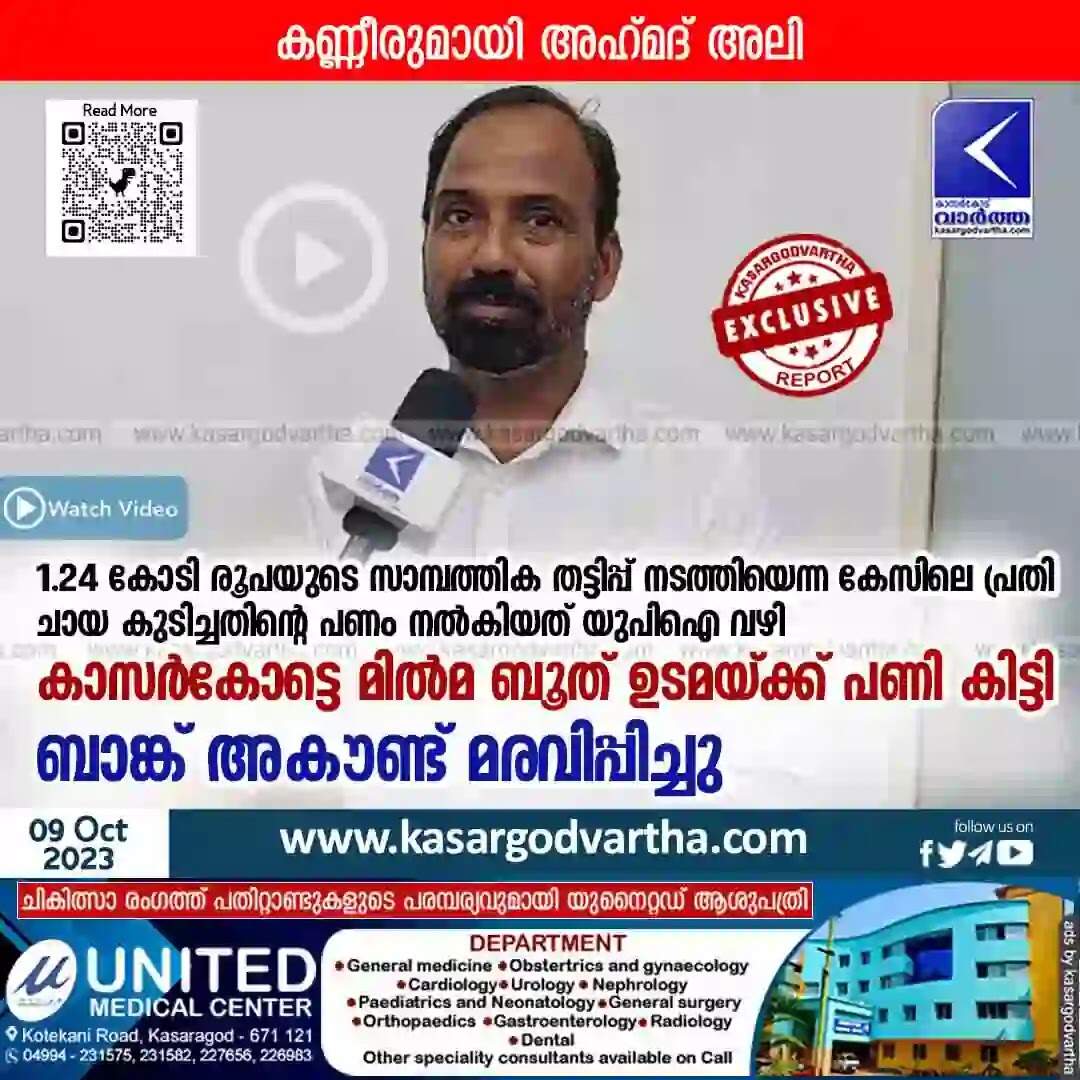 Account Frozen | 1.24 കോടി രൂപയുടെ സാമ്പത്തിക തട്ടിപ്പ് നടത്തിയെന്ന കേസിലെ പ്രതി ചായ കുടിച്ചതിന്റെ പണം നല്കിയത് യുപിഐ വഴി; കാസര്കോട്ടെ മിൽമ ബൂത് ഉടമയ്ക്ക് പണി കിട്ടി; ബാങ്ക് അകൗണ്ട് മരവിപ്പിച്ചു; കണ്ണീരുമായി അഹ്മദ് അലി