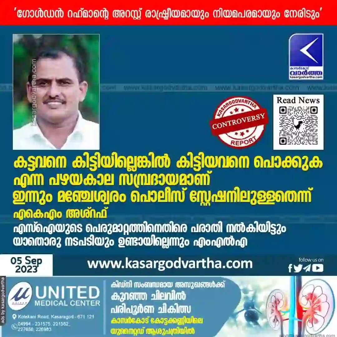 AKM Ashraf | കട്ടവനെ കിട്ടിയില്ലെങ്കിൽ കിട്ടിയവനെ പൊക്കുക എന്ന പഴയകാല സമ്പ്രദായമാണ് ഇന്നും മഞ്ചേശ്വരം പൊലീസ് സ്റ്റേഷനിലുള്ളതെന്ന് എകെഎം അശ്റഫ്; എസ്ഐയുടെ പെരുമാറ്റത്തിനെതിരെ പരാതി നൽകിയിട്ടും യാതൊരു നടപടിയും ഉണ്ടായില്ലെന്നും എംഎൽഎ