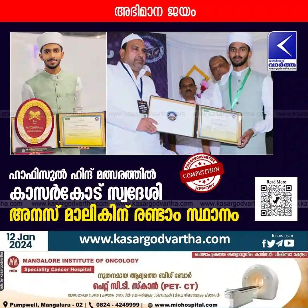 Competition | ഹാഫിസുൽ ഹിന്ദ് മത്സരത്തിൽ കാസർകോട് സ്വദേശി അനസ് മാലികിന് രണ്ടാം സ്ഥാനം