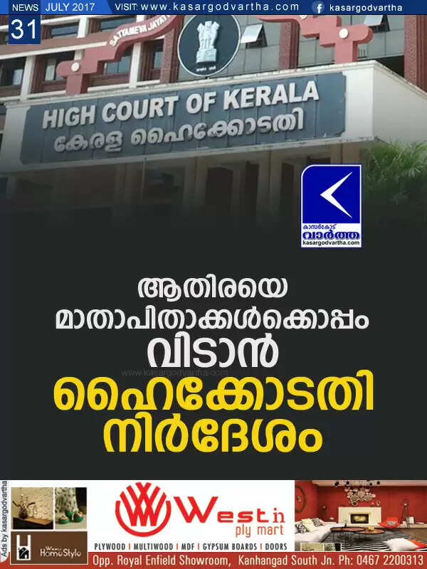 ആതിരയെ മാതാപിതാക്കള്ക്കൊപ്പം വിടാന് ഹൈക്കോടതി നിര്ദേശം