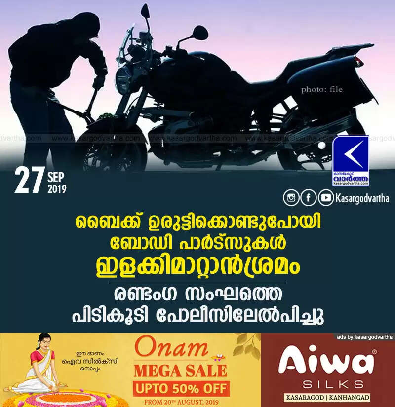 Keywords:  Kasaragod, Kerala, news, Top-Headlines, Police, custody, Attempt to stole parts from Bike; 2 taken to custody