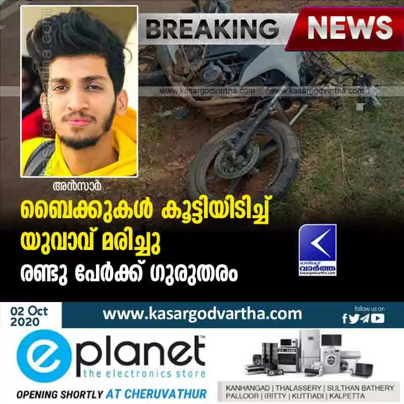 ബൈക്കുകൾ കൂട്ടിയിടിച്ച് യുവാവ് മരിച്ചു; രണ്ടു പേർക്ക് ഗുരുതരം