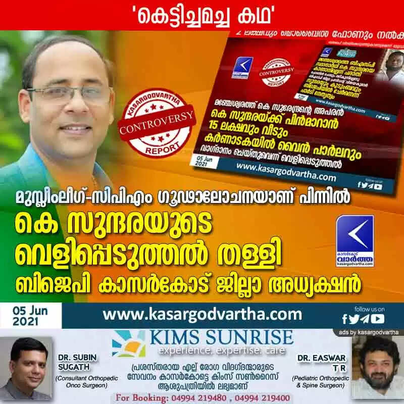 മുസ്ലീംലീഗ്- സിപിഎം ഗൂഢാലോചനയാണ് പിന്നിൽ: കെ സുന്ദരയുടെ വെളിപ്പെടുത്തല്‍ തള്ളി ബിജെപി കാസർകോട് ജില്ലാ അധ്യക്ഷൻ