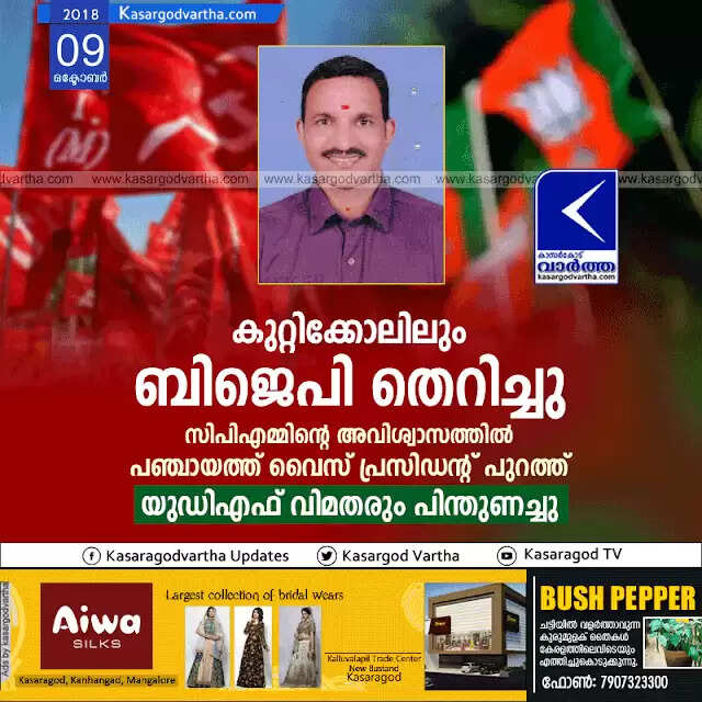 Keywords: Kerala, kasaragod, news, Kuttikol, Top-Headlines, CPM, BJP, Congress,BJP unseated from Vice president chair in Kutikkol Grama Panchayath
