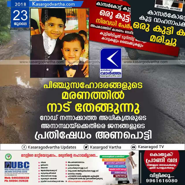 പിഞ്ചുസഹോദരങ്ങളുടെ മരണത്തില് നാട് തേങ്ങുന്നു; റോഡ് നന്നാക്കാത്ത അധികൃതരുടെ അനാസ്ഥയ്ക്കെതിരെ ജനങ്ങളുടെ പ്രതിഷേധം അണപൊട്ടി