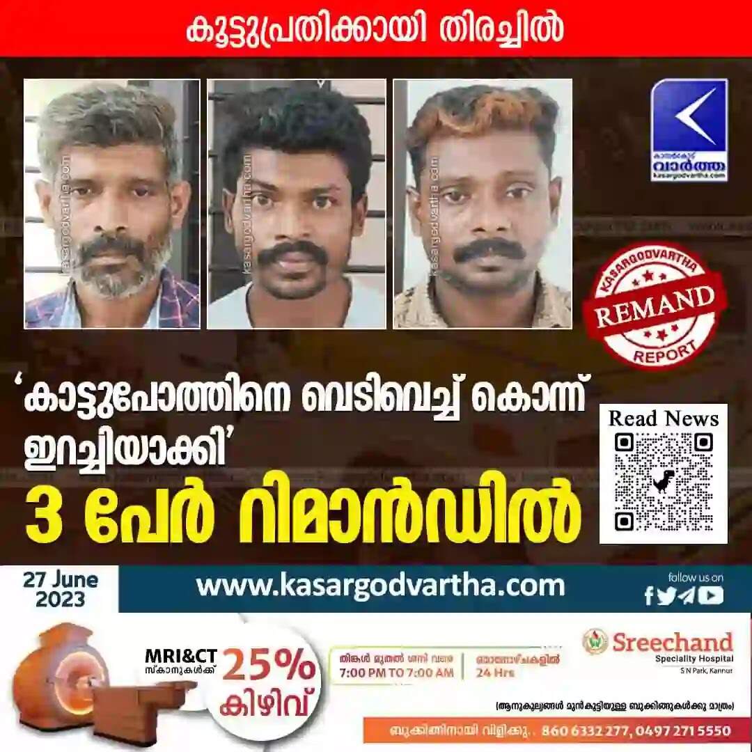 Remanded | 'കാട്ടുപോത്തിനെ വെടിവെച്ച് കൊന്ന് ഇറച്ചിയാക്കി'; 3 പേര് റിമാൻഡിൽ; കൂട്ടുപ്രതിക്കായി തിരച്ചിൽ