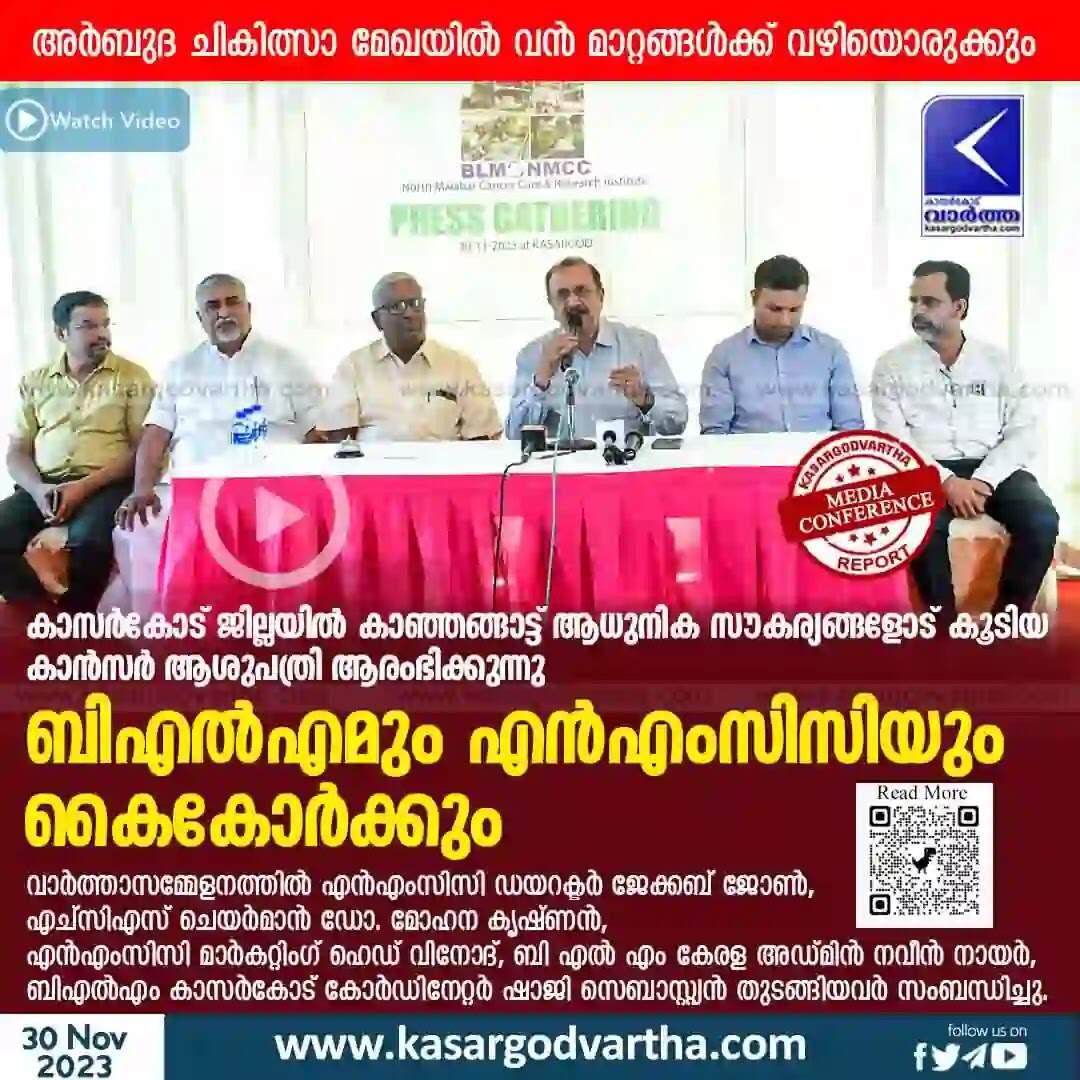 Keywords: Cancer Hospital, Kanhangad, Malayalam News, Kerala News, Kasaragod News, Cancer Treatment, BLM, NMCC, Cancer hospital with modern facilities will start in Kanhangad.