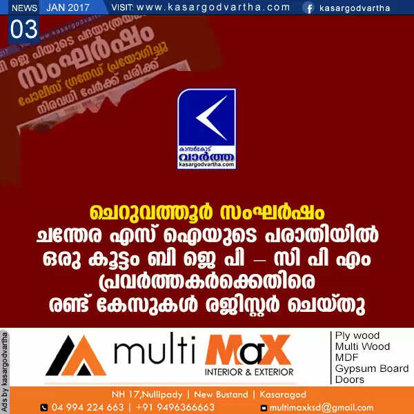 Keywords: Cheruvathur, Kasaragod, Kerala, Top-Headlines, കേരള വാര്ത്ത, Clash, BJP, CPM,