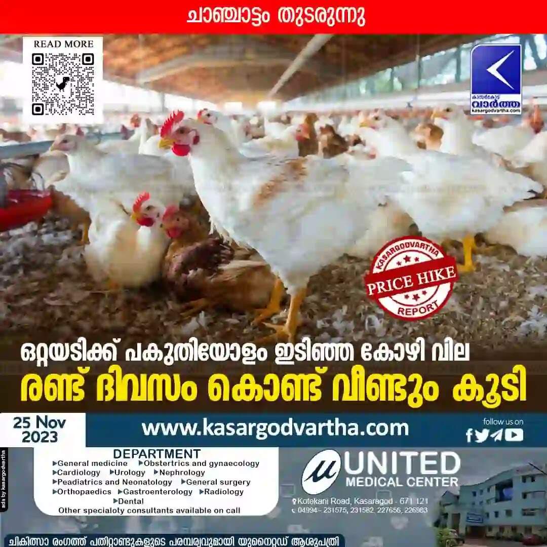 Keywords: Chicken price, Food, Malayalam News, Kerala News, Kasaragod News, Chicken Price Hike, Price, Chicken price increased again in two days.
