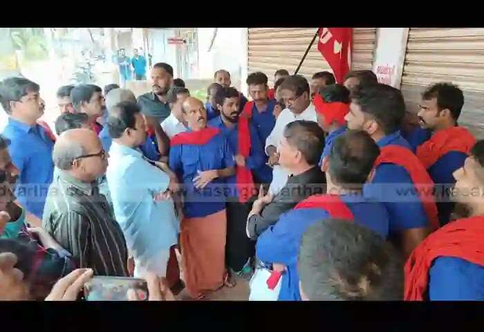 Keywords: News, Malayalam News, Kerala, Cheruvathur, Beevareges, Consumerfed, Headlod wokers, CITU activists block Consumer Fed's move to shift liquor store to another location