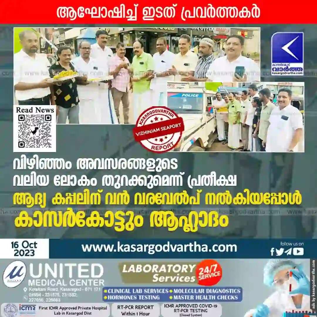 Keywords: News, Kerala, Kasaragod, Vizhinjam, Seaport, Business, CM Flags-In First Ship Into Vizhinjam Port; Kasaragod also celebrated.