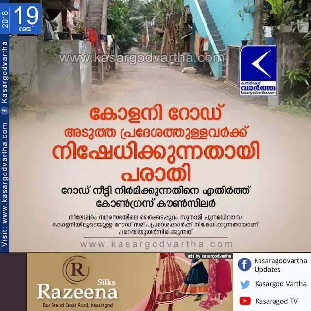 Keywords: Kasaragod, Kerala, news, Neeleswaram, Road, Top-Headlines, Colony Road denied for Neighbor natives, Complaint < !- START disable copy paste -->