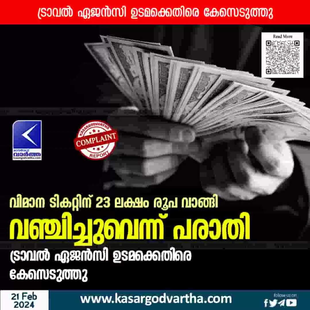 Police FIR | വിമാന ടികറ്റിന് 23 ലക്ഷം രൂപ വാങ്ങി വഞ്ചിച്ചുവെന്ന് പരാതി; ട്രാവൽ ഏജൻസി ഉടമക്കെതിരെ കേസെടുത്തു