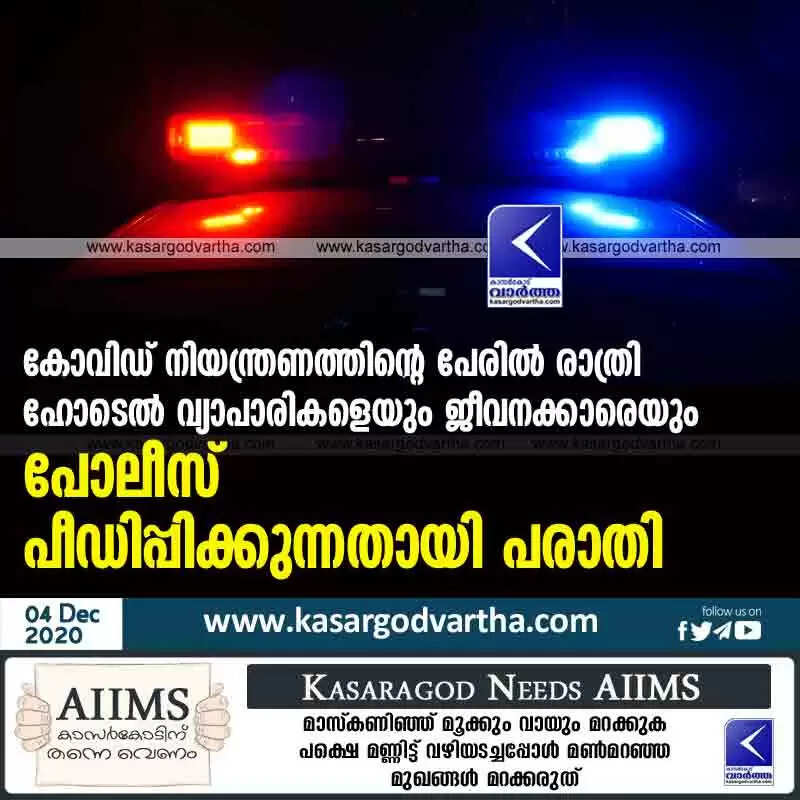 കോവിഡ് നിയന്ത്രണത്തിൻ്റെ പേരിൽ രാത്രി ഹോടെൽ വ്യാപാരികളെയും ജീവനക്കാരെയും പോലീസ് പീഡിപ്പിക്കുന്നതായി പരാതി