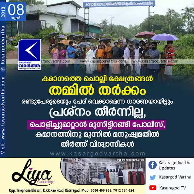 Keywords:  Kasaragod, Kerala, news, Kanhangad, Police, Temple, Top-Headlines, Conflict between Temple office bearers over Arch