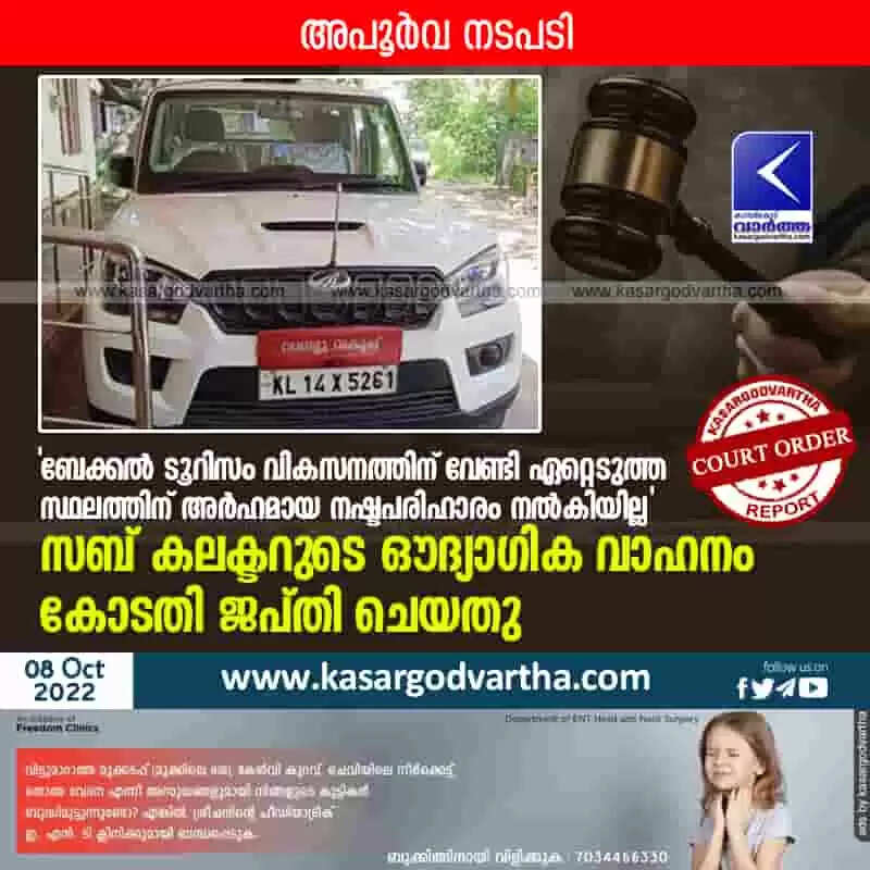 Keywords: Court confiscated official vehicle of sub-collector, Kerala, Kanhangad, CourtOrder, Bekal, news, Top-Headlines, Hosdurg.