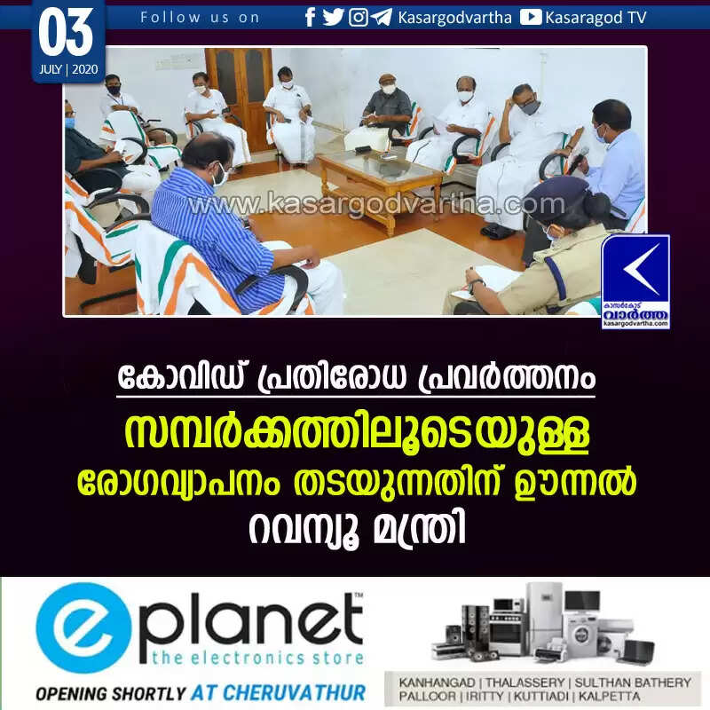 കോവിഡ് പ്രതിരോധ പ്രവര്ത്തനം: സമ്പര്ക്കത്തിലൂടെയുള്ള രോഗവ്യാപനം തടയുന്നതിന് ഊന്നല്: റവന്യൂ മന്ത്രി