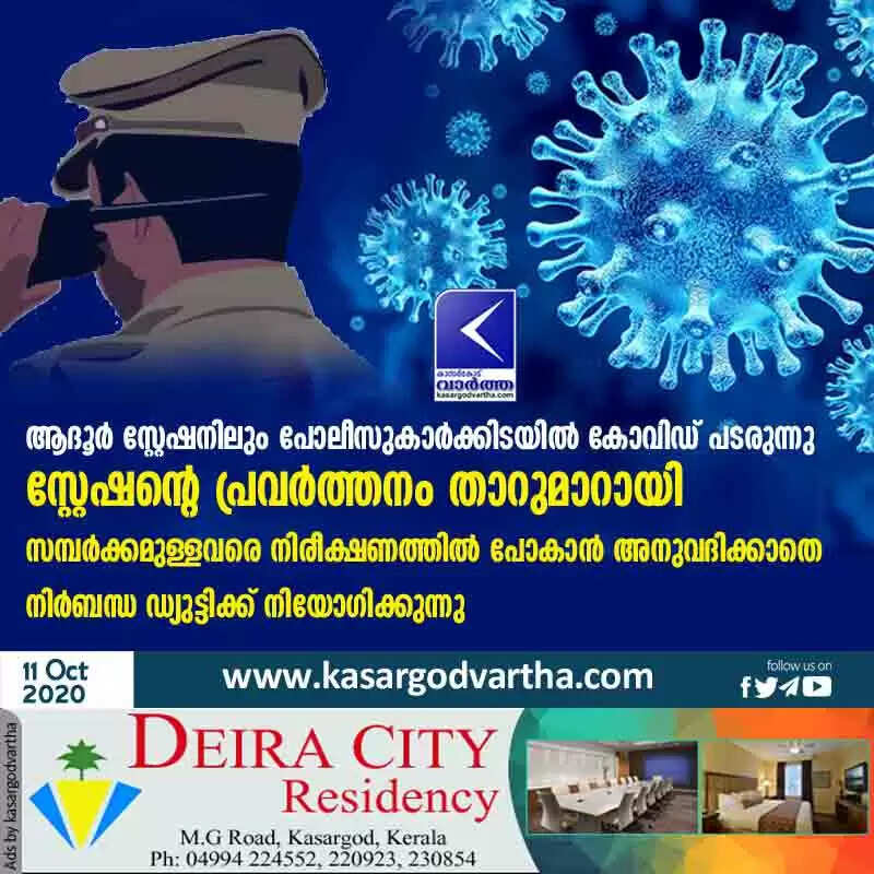 Keywords: News, Kerala, Kasaragod, Adoor, Police, Police-station, COVID-19, S I, Corona, Top-Headlines, Complaint, COVID spreads among policemen at Adhur station; 10 policemen diagnosed with the disease: Fever to SI; The operation of the station disrupted.