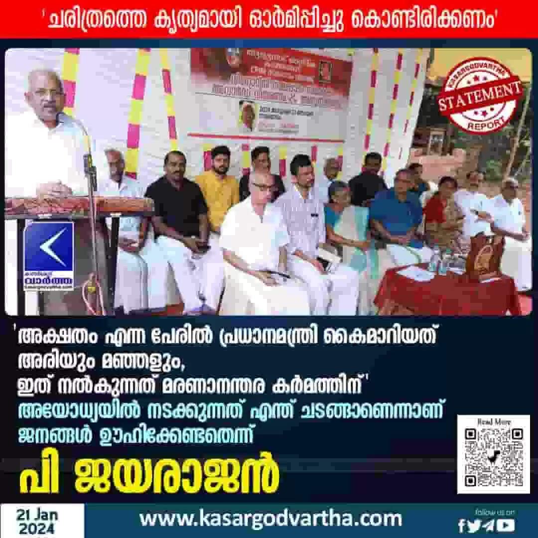 P Jayarajan | 'അക്ഷതം എന്ന പേരിൽ പ്രധാനമന്ത്രി കൈമാറിയത് അരിയും മഞ്ഞളും, ഇത് നൽകുന്നത് മരണാനന്തര കർമത്തിന്'; അയോധ്യയിൽ നടക്കുന്നത് എന്ത് ചടങ്ങാണെന്നാണ് ജനങ്ങൾ ഊഹിക്കേണ്ടതെന്ന ചോദ്യവുമായി പി ജയരാജൻ
