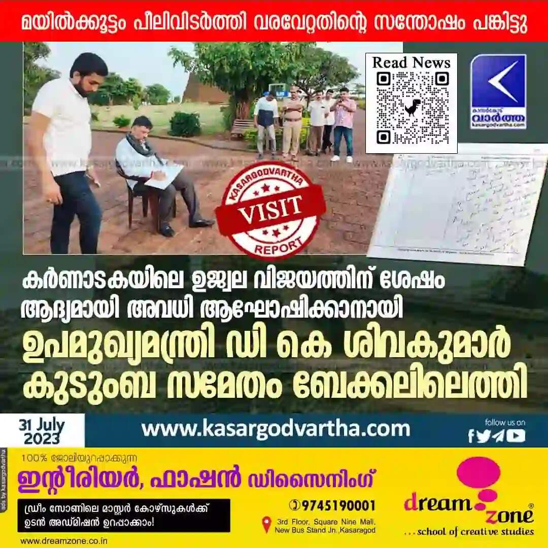 DK Shivakumar | കർണാടകയിലെ ഉജ്വല വിജയത്തിന് ശേഷം ആദ്യമായി അവധി ആഘോഷിക്കാനായി ഉപമുഖ്യമന്ത്രി ഡി കെ ശിവകുമാർ കുടുംബ സമേതം ബേക്കലിലെത്തി