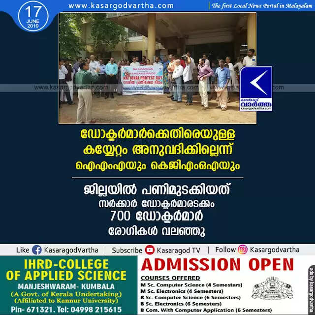 Keywords: kasaragod, news, Top-Headlines, General-hospital, hospital, Doctors, health, Strike, Doctors strike, more than 700 Doctors cooperate with strike in Kasargod